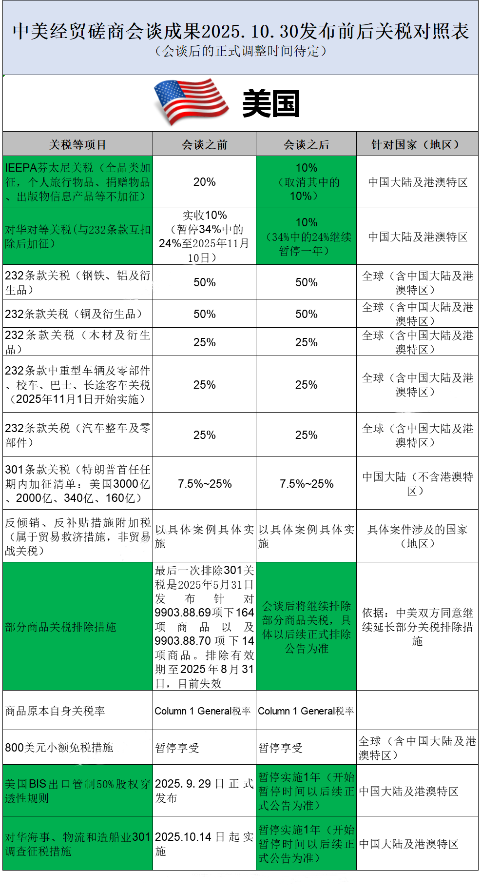 ●美国各类232条款关税是对全球国家地区实施的,本次不涉及调整,照旧实施。