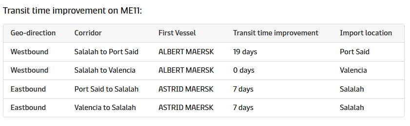 通知中重申,马士基与赫伯罗特决定对“双子星”联盟旗下航线作出调整。自2026年2月中旬起,马士基的ME11航线将进行结构性变更,改经红海与苏伊士运河。这一调整标志着双方合作迈入重要阶段,将为客户带来更高效的运输服务。