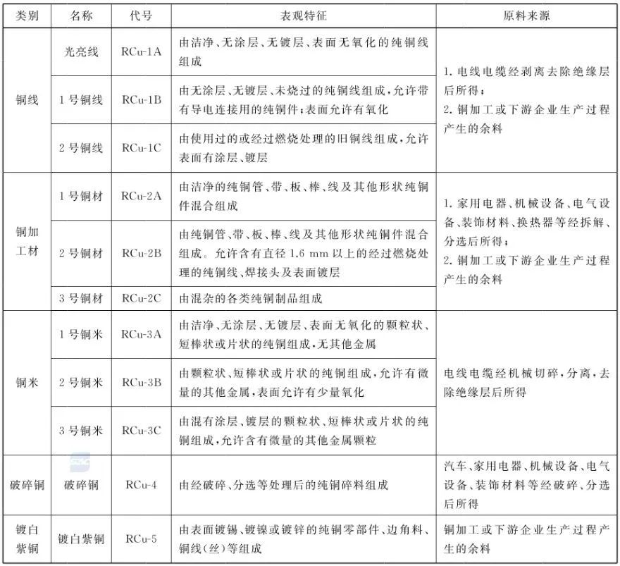 再生铜原料是指:将回收的铜或者其混合金属进行分选或预处理后,满足国家标准要求,可直接生产利用的原料。