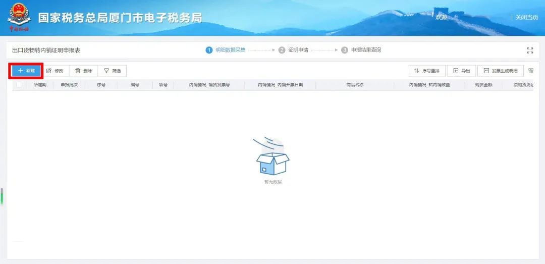 选择“开具出口退(免)税证明”,进入“出口货物转内销证明开具界面”。