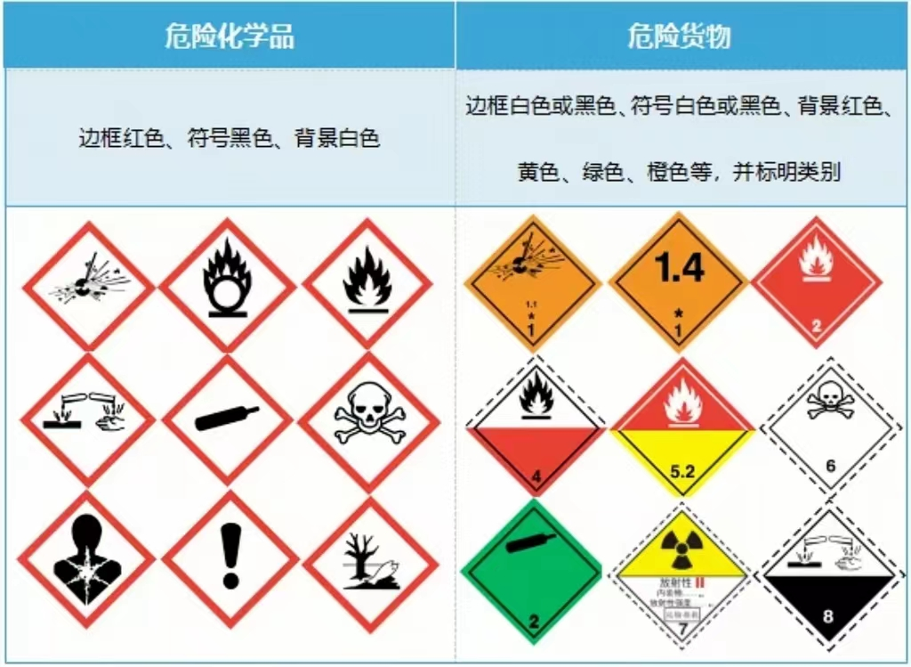 注意:危险货物和危险化学品概念不一样,危险货物不一定是危险化学品,比如汽车安全气囊,锂电池等。