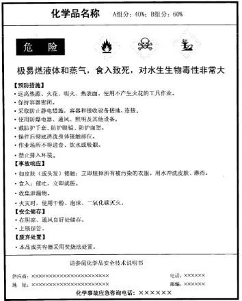 常见的标签样例见图3;单一包装的标签位置见图4;组合包装的标签位置见图5,内外包装均需粘贴化学品安全标签。