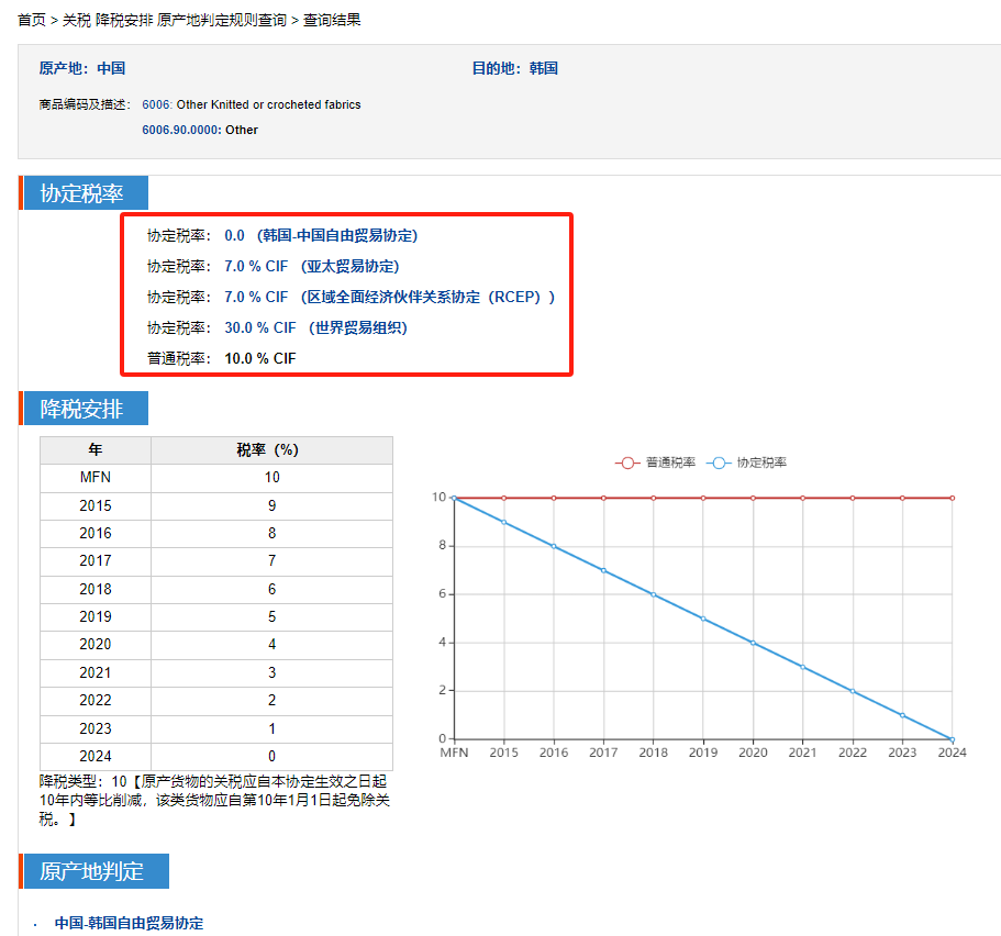 举个例子:出口到韩国的货物,商品为亚麻针织布,HS编码6009.90。