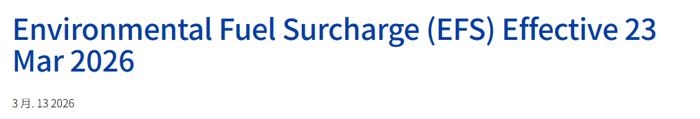 ●自2026年3月23日起,对燃油附加费(EFS)进行调整:价格约为1200–1250美元/吨。