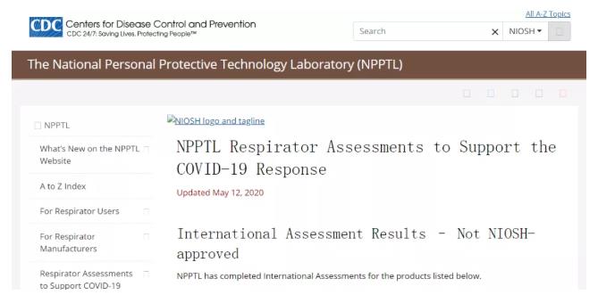 5月12日,美国疾病预防与控制中心(CDC)发布了一篇名为《NPPTL Respirator Assessments to Support the COVID-19 Response》关于中国口罩检测结果的公告。