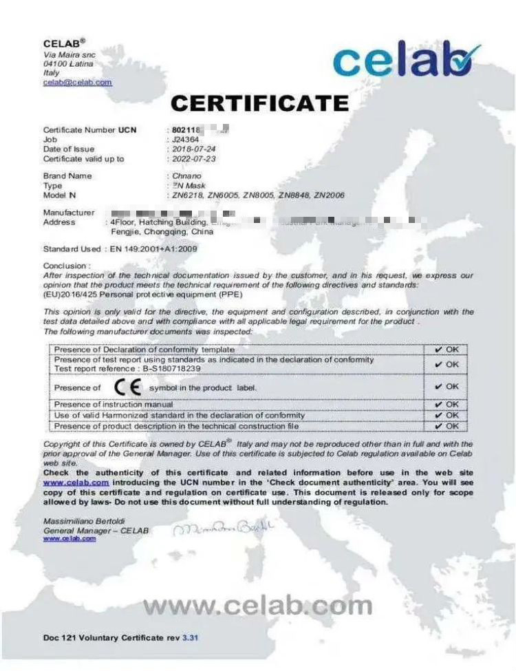 因此国内企业生产的口罩如果需要CE认证证书,必须找到一家公告机构且其具有相对应产品法规的授权,其出具的CE证书才是具有法律效力的。